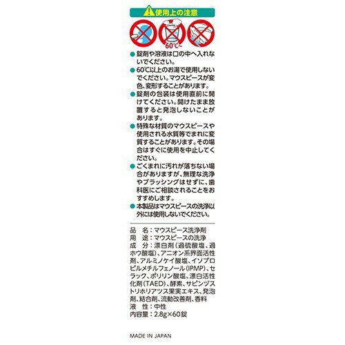 お店TOP>バス・洗面>入れ歯 義歯>入れ歯 洗浄>デントウォッシュ デンタルマウスピース洗浄剤 (60錠)税抜2500円以上で送料無料(北海道・沖縄除く)【デントウォッシュ デンタルマウスピース洗浄剤の商品詳細】●カビやバイ菌を強力除菌。