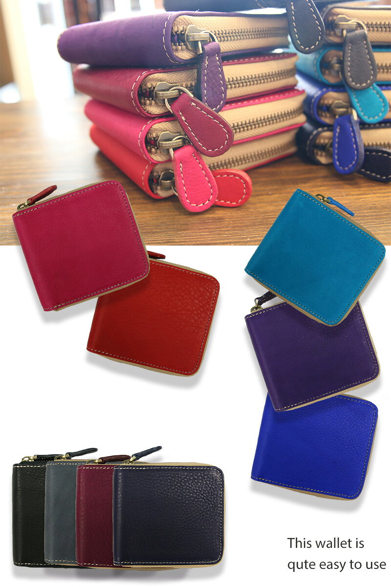 二つ折り財布 ミニ財布 小さい財布 ラウンドファスナー 極小財布 コンパクト 革財布 2つ折り財布 メンズ レディース 本革 レザー ハンドメイド